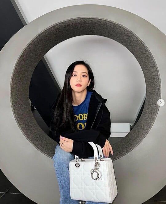 공개된 사진 속에는 조형물에 앉아 포즈를 취하고 있는 지수의 모습이 담겼다. 지수는 파란색 민소매에 집업 재킷, 청바지로 캐주얼한 패션을 완성한 가운데 명품 가방으로 포인트를 줬다.