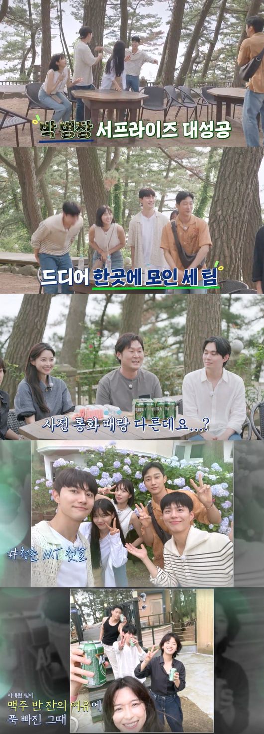 9일 오후 4시 공개된 TVING(티빙) 오리지널 '청춘MT' 1, 2화에서는 '구르미 그린 달빛' 박보검, 김유정, 진영, 채수빈, 곽동연, '이태원 클라쓰' 박서준, 권나라, 류경수, 이주영, '안나라수마나라' 지창욱, 최성은, 황인엽, 지혜원 김보윤이 모두 한 자리에 모였다.