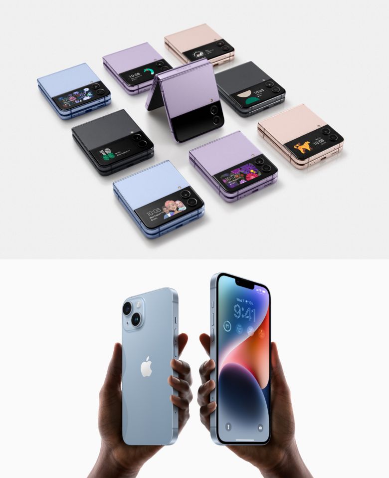 갤럭시 Z 플립4(위), 아이폰14ㆍ아이폰14플러스(아래) |