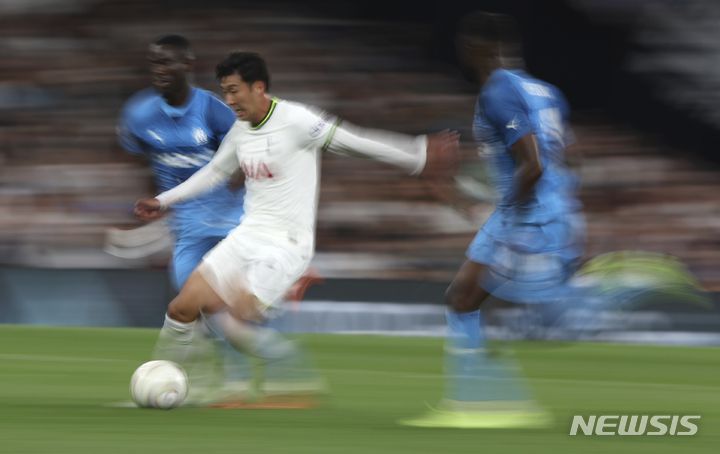 [런던=AP/뉴시스] 토트넘 홋스퍼의 손흥민이 7일(현지시간) 영국 런던의 토트넘 홋스퍼 스타디움에서 열린 2022~23 유럽축구연맹(UEFA) 챔피언스리그 조별리그 D조 1차전 마르세유(스페인)와의 경기에 선발 출전해 질주하고 있다. 손흥민은 빠른 드리블로 상대의 퇴장을 유도했고 토트넘은 히샬리송의 멀티 골로 2-0 승리를 거뒀다. 2022.09.08. |