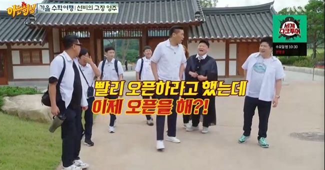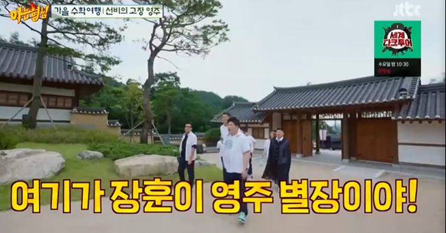 영주의 한옥마을에 도착했다. 마치 조선시대 골목을 걷는 듯 과거로 타임머신한 기분을 들게 했다. 문에 들어서자마자 모두 "여기가 장훈이네 영주 별장이냐"며 웃음, 서장훈도 "빨리 오픈하라고 했는데 이제야 오픈을 해? 이것들을 그냥"이라며 콩트로 받아쳤다.