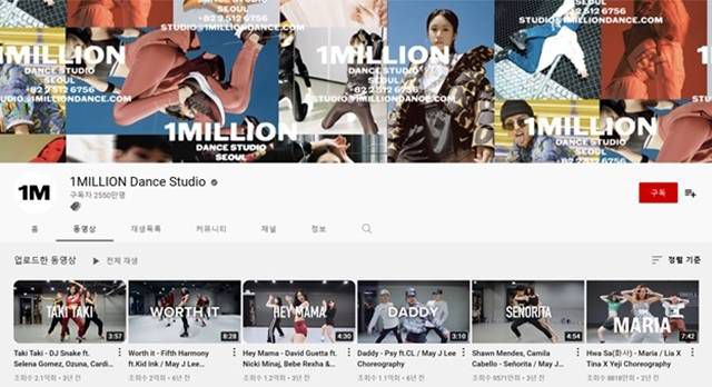 최근 유튜브에서 특정가수의 퍼포먼스를 모방해 추는 춤인 '커버댄스'를 콘텐츠로 삼는 유튜버들이 늘어나고 있다. 사진은 유명 안무가 리아킴이 공동 대표로 활동 중인 댄스 레이블 '원밀리언' 공식 유튜브 채널의 모습. /유튜브 채널 '원밀리언 댄스 스튜디오' 캡처 |