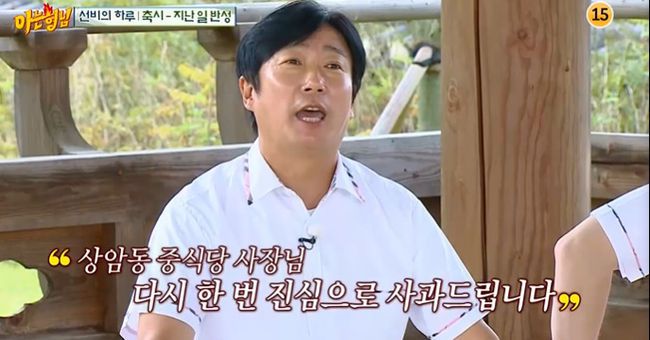 이수근은 "얼마 전 짜장면 시켜먹고 고춧가루 없길래 투덜대니 배달하시는 분이 가져다주면 될거 아니냐고 하더라, 식은 땀이 났다"며 "이 자리 빌려 죄송하다, 항상 말조심하겠다, 언행을 조심하겠다"며 급하게 사과방송했다.