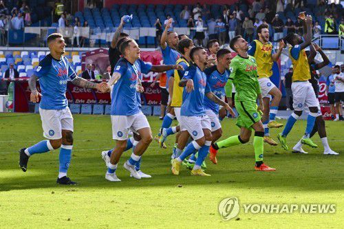 스페치아전 승리를 기뻐하는 나폴리 선수들 |