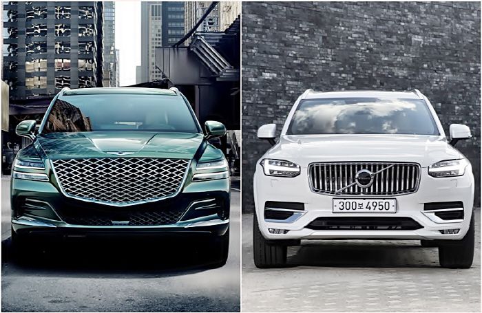 제네시스 GV80(왼쪽)과 볼보 XC90 [사진출처=제네시스, 볼보] |