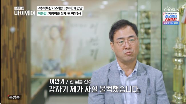 11일 오후 방송된 TV조선 예능 프로그램 '스타다큐 마이웨이'(이하 '마이웨이')에서는 방송 최초로 80년대 씨름으로 지금의 아이돌급 인기를 누렸던 이만기, 이봉걸, 이준희, ‘모래판의 3이(李)’가 감격의 상봉을 했다.