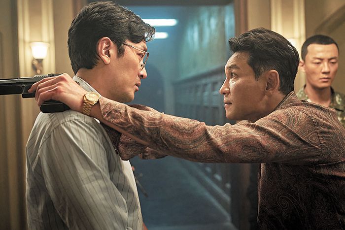 한인 마약왕 전요환(황정민·오른쪽)과 국정원 체포 작전에 협력하는 강인구(하정우). /넷플릭스 |