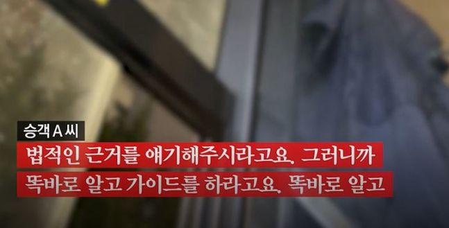 A씨는 인격 모독적인 발언도 서슴지 않았다. 버스기사가 “따질 걸 따져. 대중들한테 물어봐요”라고 말하자 A씨는 “무식하면 무식한 대로. 아저씨, 이거 (들고) 타지 말라는 법적인 근거를 얘기해 달라”고 했다. 또 고객센터로 추정되는 곳에 전화를 걸어서는 “교육 제대로 시키라”며 “잘 모르면서 그렇게 무작정 하지 마시고요. 똘똘한 사람들은 그렇게 안 하거든요”라고 들으라는 듯 크게 말했다. 그는 “법에 대해서 충분히 얘기했는데도 납득하지 못하고 앞에서 XX를 하시면 지금 제가 열을 받겠죠”라며 욕설을 하기도 했다.