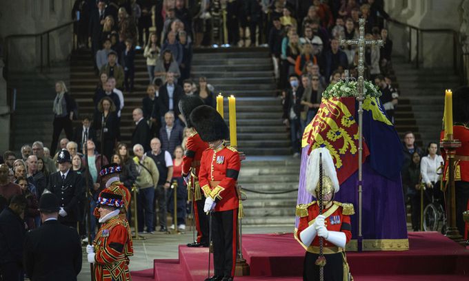 수천 명의 추모 인파는 여왕에게 직접 조의를 표하기 위한 몇 분을 위해 길게는 10시간을 기다리는 수고를 마다치 않았다. 영국 정부는 조문객들을 위해 이동로를 따라 곳곳에 간이 화장실을 설치하고 응급 상황에 대비해 의료 전문가들을 배치했다. 보안 검사를 통과해 웨스트민스터 홀에 들어선 조문객 중 일부는 여왕의 관 앞에서 눈물을 훔쳤고, 고개를 숙였다. 무릎을 꿇고 여왕에게 작별의 키스를 한 조문객도 있었다. 작별 인사의 방식은 제각각이었지만 나가기 전 마지막으로 여왕의 관을 돌아보는 건 공통된 반응이었다고 외신들은 전했다.