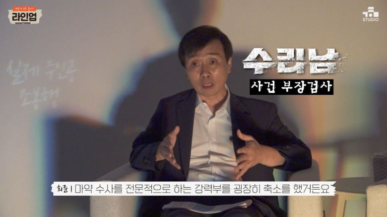 '스타 강력 검사' 출신 김희준 변호사가 2011년 지휘한 수리남 사건에 대해 이야기하던 도중 지난 정부의 검찰 개혁에 대해 일침을 날렸다. /유튜브 채널 '라인업 LineUp' |