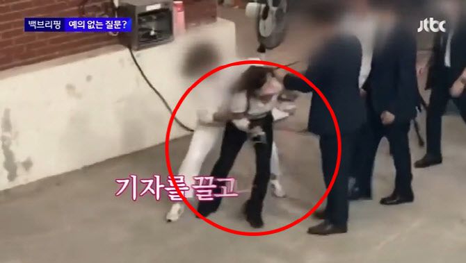 급기야 여기자 뒤에 있던 한 여성은 기자의 머리를 잡고 흔들기까지 했다. 이 과정에서 여기자가 넘어지자 주변 사람들도 함께 폭력에 가담했다.