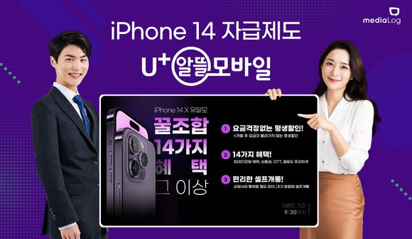 미디어로그 U+알뜰모바일 아이폰14 자급제 행사 이미지. [사진=미디어로그]