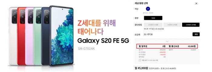 KT가 지난 4월 선보인 삼성 갤럭시S20 FE 2022가 출시 5개월 만에 공짜폰으로 전락했다. 사진=KT 제공 |
