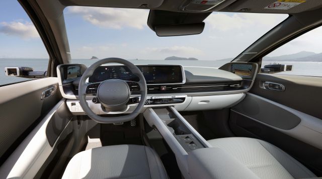 아이오닉 6 내부에는 우선 디지털 사이드 미러가 눈에 띈다. 차선을 바꿀 때 쉽게 좌우를 확인할 수 있는 것이 특징이다. 또한 방향지시등(깜빡이)을 키면 계기판에 움직이려는 차선 쪽 도로 상황이 보이게 된다. 앞에 있는 차들이 갑자기 속도를 줄일 때에도 발빠르게 대응이 가능하다. 차간 거리가 일정 수준 이상으로 가까워지면 경고를 알리는 소리와 함께 앞 유리에 투사된 계기판에 빨간 표시가 등장한다.
