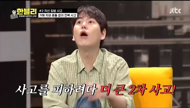 한문철은 "나는 운이 좋았다. 나랑 똑같은 사고로 내가 아는 지인의 아내분은 돌아가셨다. 사고가 크냐 적냐가 아니라 운이 나쁘면 크게 다칠 수 있다"라고 말했다.