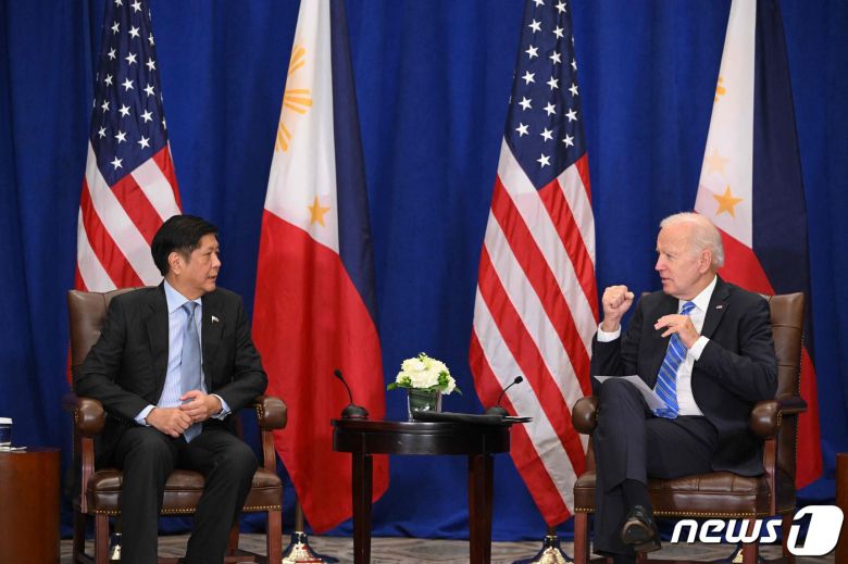 (서울=뉴스1) 김민수 기자 = 조 바이든 미국 대통령이 페르디난드 마르코스 주니어 필리핀 대통령과 22일(현지시간) 만나 남중국해에서 항행과 상공비행의 자유에 대한 지지를 강조했다.
