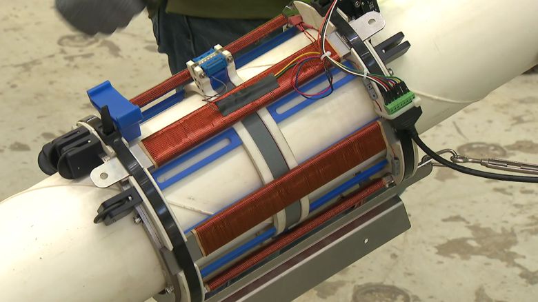 로봇이 센서를 끌고 이동하면 센서가 케이블 내부를 스캔해 손상 여부를 알려줍니다.