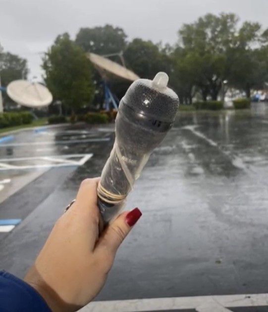 (서울=뉴스1) 김송이 기자 = 역대 5번째 강도의 초강력 허리케인 '이언'이 미국 플로리다를 강타해 피해가 큰 가운데 한 여성 기자가 사용한 콘돔 마이크가 화제가 되고 있다.