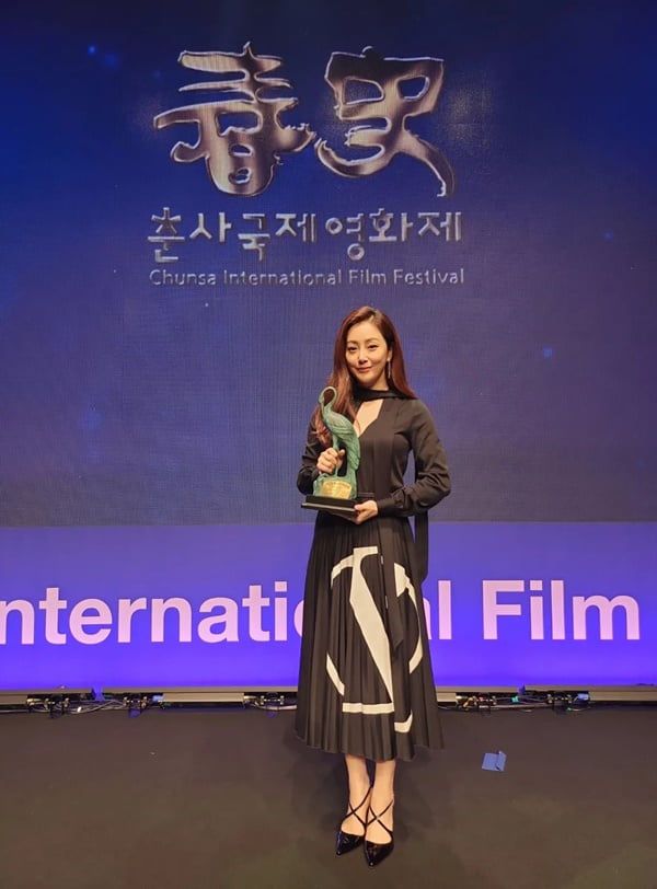 공개된 사진 속에는 오나라의 모습이 담겼다. 오나라는 이날 열린 제27회 춘사국제영화제에서 영화 '장르만 로맨스'로 여우조연상 트로피를 품에 안았다.
