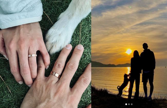 공개된 사진은 그가 직접 신부와의 모습을 촬영한 것으로, 결혼반지를 낀 두 사람의 손을 나란히 공개했다. 특히 반려견의 손까지 귀여움을 더하기도.