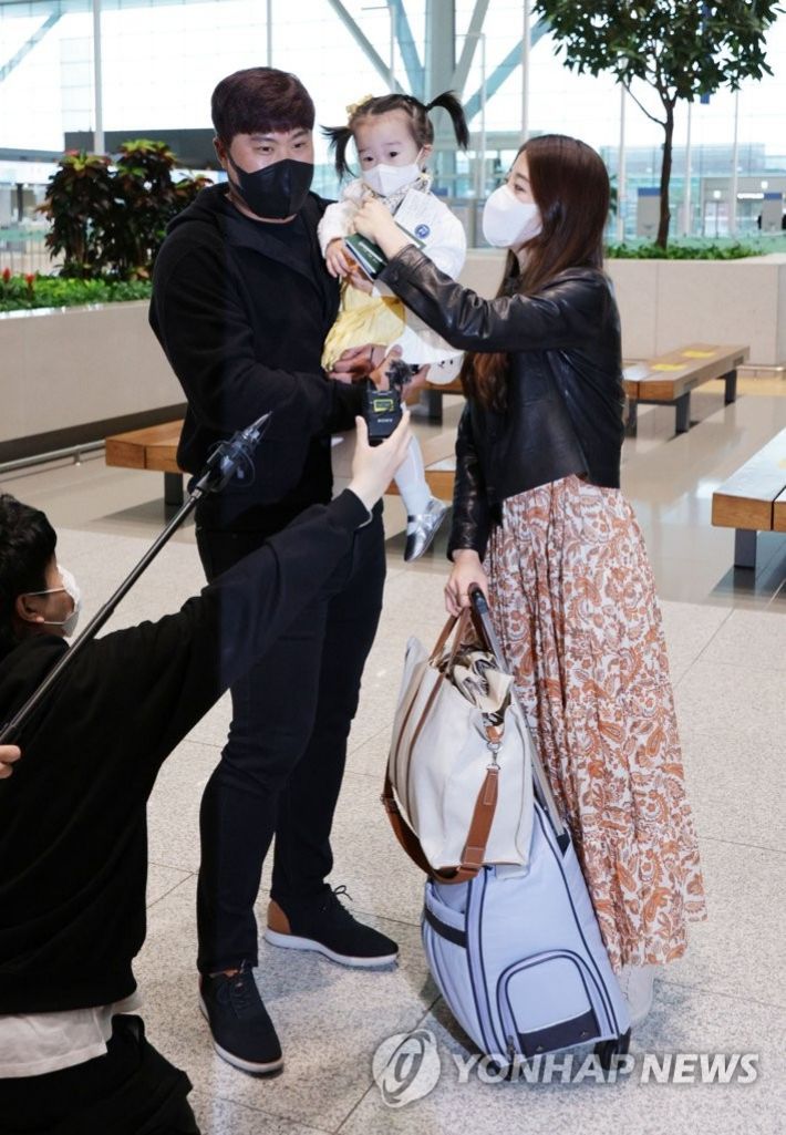 2020년 첫째 딸에 이어 2년여 만에 둘째 아들을 본 류현진(왼쪽)-배지현 부부. 연합뉴스 자료사진 |
