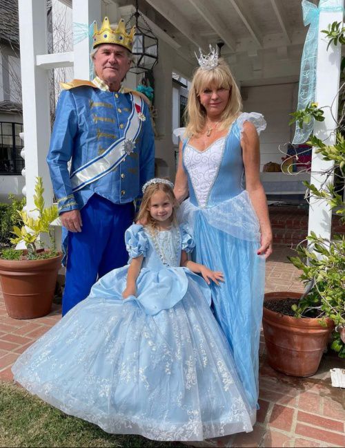 골디 혼은 고전적인 신데렐라 코스튬을 입고 왕관을 썼다. 남편인 배우 커트 러셀(71)은 왕자 의상을 입고 역시 머리는 화려한금관으로 장식했다. 라니는 어여쁘고 사랑스러운 공주 분장을 했다.