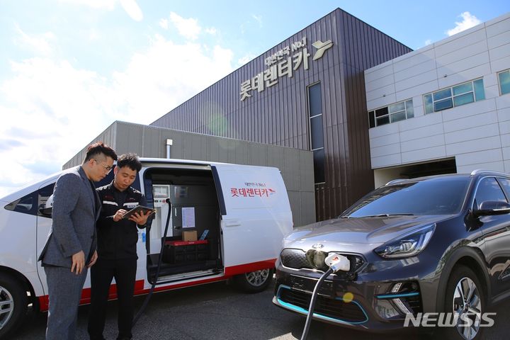 2일 업계에 따르면 롯데렌탈의 차량관리 전문 자회사 롯데오토케어는 최근 산업통상자원부로부터 실증특례 승인을 받아 업계 최초로 전기차 방문 충전 서비스를 출시했다.