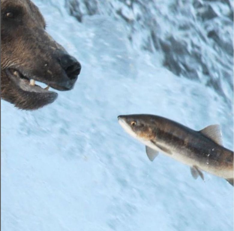 /Katmai National Park instagram 알래스카 카트마이 국립공원에서 곰이 사냥한 연어를 먹어치우고 있다. |