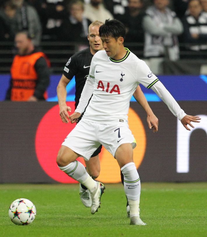 손흥민은 5일(한국시간) 독일 프랑크푸르트의 도이체 방크 파르크에서 열린 2022-2023시즌 유럽축구연맹(UEFA) 챔피언스리그 D조 3차전 아인트라흐트 프랑크푸르트와 원정 경기에 선발 출전해 골맛을 보지 못했다.