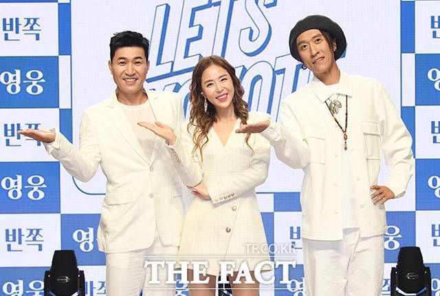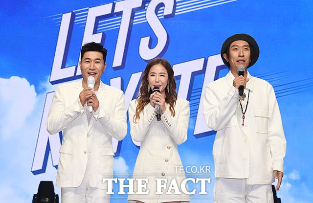 [더팩트ㅣ박헌우 인턴기자] 국내 최장수 혼성 그룹 그룹 코요태 김종민, 신지, 빽가(왼쪽부터)가 5일 오후 서울시 강남구 일지아트홀에서 열린 새 앨범 'LET's KOYOTE' 발매 기념 쇼케이스에 참석해 포즈를 취하고 있다.