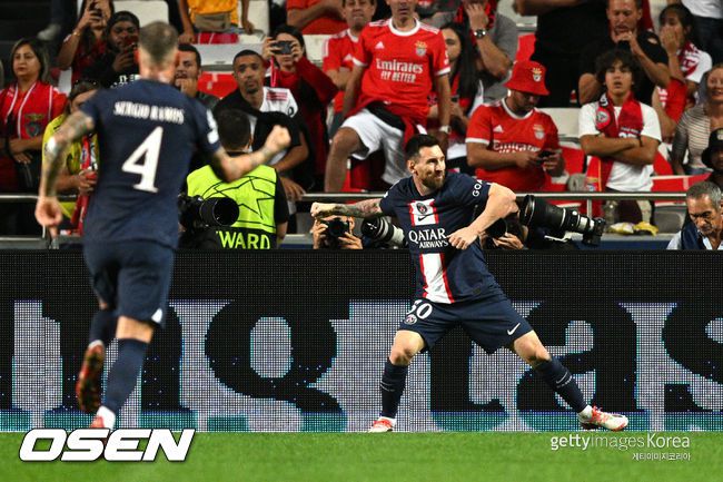 '빛바랜 메시 원더골' PSG, 벤피카 원정서 1-1 무승부...조 1위 유지