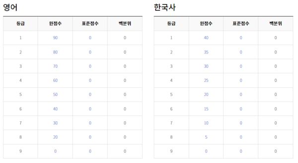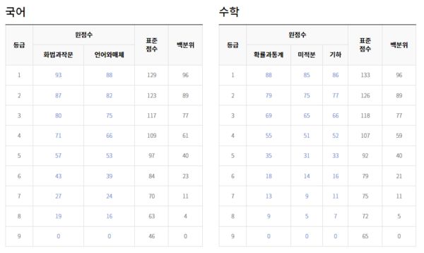 이하 9월 모의고사 등급컷