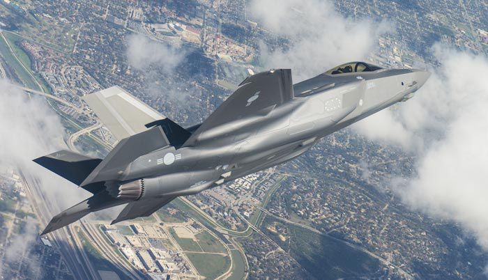 우리 공군이 미국으로부터 도입한 최첨단 스텔스 전투기인 F-35A가 시험 비행하는 모습. /록히트마틴 조선일보DB |