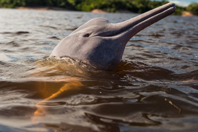 아마존강돌고래의 모습. 주요 분포지는 남아메리카의 아마존강과 오리노코강 유역이며, 생태계 파괴로 개체 수가 현저히 줄어들고 있다.(사진=AFP)