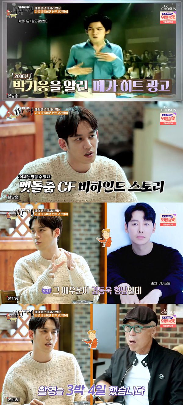 이날 박기웅은 지난 2006년 메가 히트를 기록한 맷돌춤에 대해 "광고 촬영장에 갔더니 저랑 똑같은 옷을 입은 사람이 한 명 더 있었다. 두 명 중에 한 명이 최종 픽스가 됐는데, 상대는 배우 김동욱이었다"고 말했다.