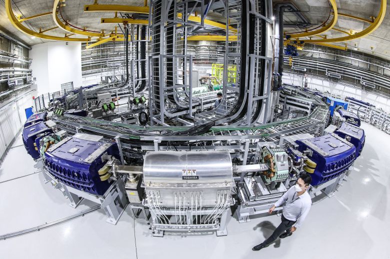 연세의료원 중입자치료센터 지하 4층에 직경 20m 크기의 '중입자가속기'가 설치돼 시험 가동중이다. 일본 도시바의 기술로 설계·제작·시공됐다. |