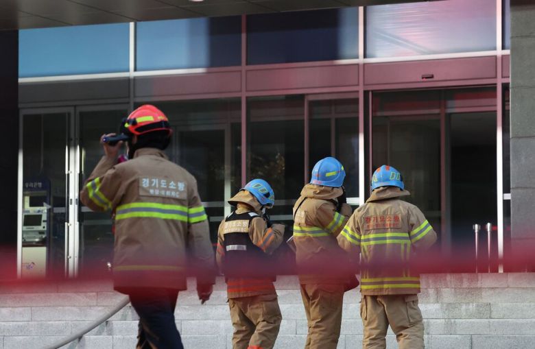 15일 오후 화재가 발생한 경기 성남시 분당구 삼평동 SK 판교 캠퍼스 A동에서 소방관들이 분주하게 움직이고 있다. 불이 난 건물은 네이버, 카카오, SK통신사가 데이터를 관리하는 업무 시설이다. 이 불로 카카오톡, 카카오 택시, 포털사이트 다음 등 통신 장애가 발생했다. 연합뉴스 |