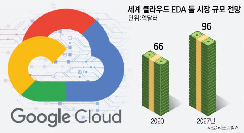 구글 클라우드가 반도체 설계 시장에서 영향력을 넓히고 있다. 반도체 설계자동화(EDA) 툴을 클라우드 환경에서 활용하는 사례가 늘고 있기 때문이다. 세계 반도체 EDA 툴 상위 3개사 모두 구글 클라우드로 설계 환경을 구축하면서 기존 라이선스 단위 비즈니스모델(BM)의 패러다임 전환이 빨라질 전망이다.