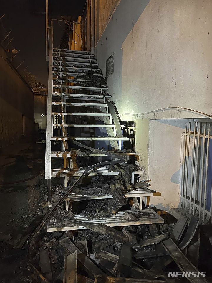 [AP/뉴시스] 이란 이리나 통신이 제공한 사진으로 16일 에빈 형무소 화재 후 한 건물 모습
