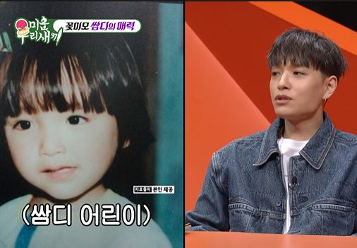 계속해서 쌈디에게 "어릴 적부터 곱상한 외모로 피곤했다고 하더라"며 어린 시절 사진을 공개, 인형같은 비주얼이 시선을 강탈했다. 모두 "외국인 같아"라고 말할 정도. 쌈디도 "여자애 같다고, 딸 얘기 많이 들었다"고 했다. 특히 평소 방송에서 공개한 그의 조카하고도 똑 닮은 모습.