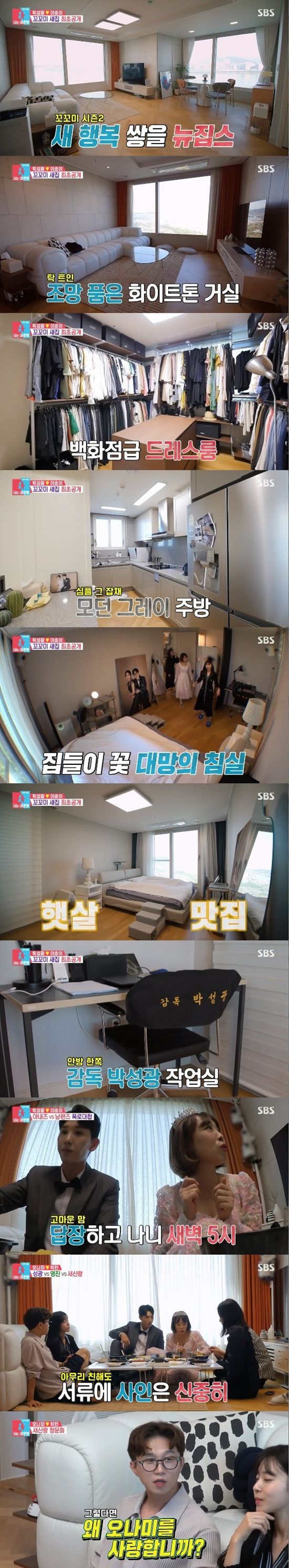 박성광-이솔이의 새 집은 탁 트인 전망을 자랑하는 화이트톤 거실에 칼각으로 정리정돈된 백화점급 드레스룸이 이목을 집중시키고 있었다. 오나미는 "옷 가게 같다"며 감탄을 했다.