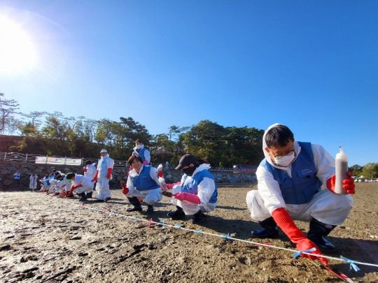 포스코건설이 해양경찰청과 함께 전개한 블루카본 보전 캠페인 현장 / 사진제공=포스코건설 |