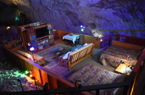 동굴 관리 회사의 홈페이지에 따르면 이 동굴 지하 모텔은 벽이 없이 개방된 형태의 숙소로, 퀸사이즈 침대와 TV, 냉장고 등을 갖추고 있다.