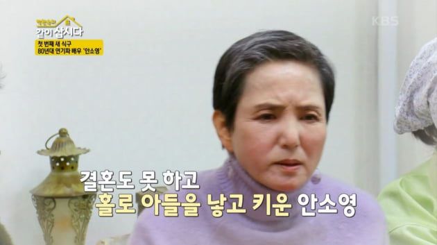 안소영은 1997년, 40대에 아들을 출산했다. 결혼한 적은 없는 안소영은 출산 후 미국으로 가서 싱글맘으로 아이를 키웠다. 안소영은 앞서 '같이 삽시다'에 출연해 이 같은 사실을 털어놨던 바 있다. 안소영이 새로운 멤버로 합류하자 박원숙과 혜은이는 반가워했다. 안소영은 "나도 식구가 됐으면 좋겠다고 생각했는데 어떻게 이렇게 됐나. 여기 온다고 새벽 3시에 잤다. 소풍 전날처럼 가슴이 떨렸다. 언니들이 반가워해줄까 생각했다"며 기뻐했다. 같이 살이를 시작하게 된 안소영은 "누군가와 같이 사는 게 (아들 말고는) 26년 만에 일이다. 언니들과 어떻게 호흡하면서 실수없이 살 수 있을까 긴장도 됐지만 설렘이 더 크다. 언니들의 사랑을 받고 싶고 사랑도 주고 싶다"고 소감을 밝혔다.