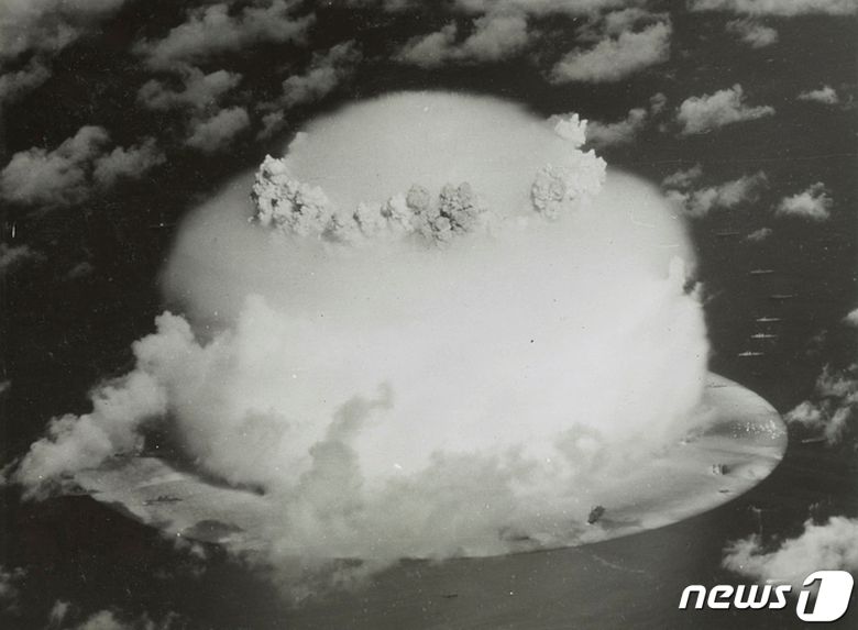 미국 의회도서관이 제공한 사진 속에 1946년 서태평양 미크로네시아의 마셜제도 북부 비키니환초에서 시행됐던 핵무기 시험발사 현장이 담겨있다. (본문과 관련없음) 2014.04.25 ⓒ 로이터=뉴스1 ⓒ News1 정윤미 기자 |