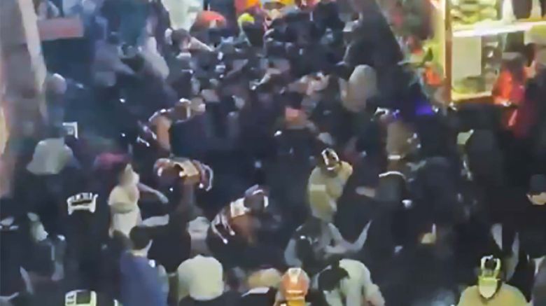 사람으로 꽉 찬 골목 안은 혼란의 도가니입니다.