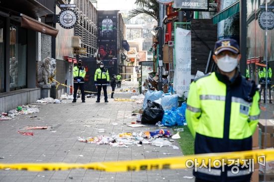 할로윈을 앞두고 이태원 일대에 대형 압사 참사가 발생한 30일 서울 용산구 이태원 일대에서 경찰병력이 현장을 통제하고 분주히 움직이고 있다./강진형 기자aymsdream@ |