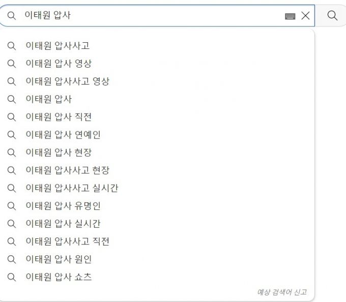 채널 검색 화면에서 '이태원'만 쳐도, '압사 사고', '압사 영상', '라이브', '심정지', '유명인', '사망' 등 연관 검색어가 자동으로 완성됐다. 인스타그램 역시 '이태원 압사 사고' 해시태그로 524건의 게시물이 올라왔다.