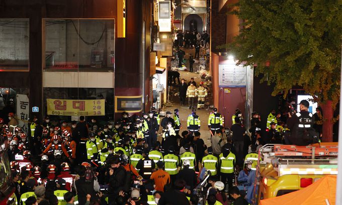 지난 29일 서울 용산구 이태원동 일대에 핼러윈을 맞아 인파가 몰려 대규모 인명사고가 발생, 소방대원들이 현장을 수습하고 있다. 연합뉴스 |