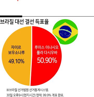 브라질 최고선거법원은 개표율 98.91%가 돼서야 룰라 전 대통령의 당선을 공식 발표했다.